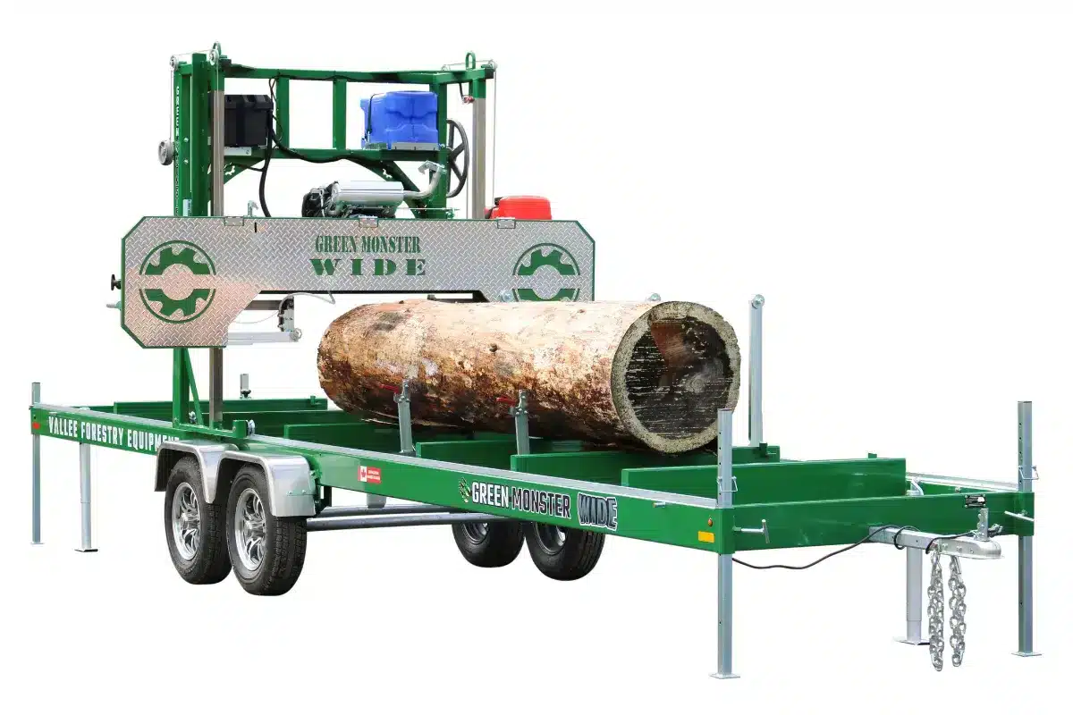 The Green Monster WIDE is primarily intended for woodworkers who produce large slabs for kitchen countertops, tables or furniture. It is designed to handle logs up to 42 inches in diameter and a maximum length up to 21 feet. The Green Monster WIDE features electric height of cut adjustment, levelers, log clamps, a hydraulic blade tensioner and a heavy-duty welded 2” x 6” x ³⁄₁₆” tubular steel frame, making it extremely sturdy and guaranteeing precise cuts. The Green Monster WIDE is also equipped with a powerful 22 HP Honda engine that allows it to do the job quickly and hassle-free.