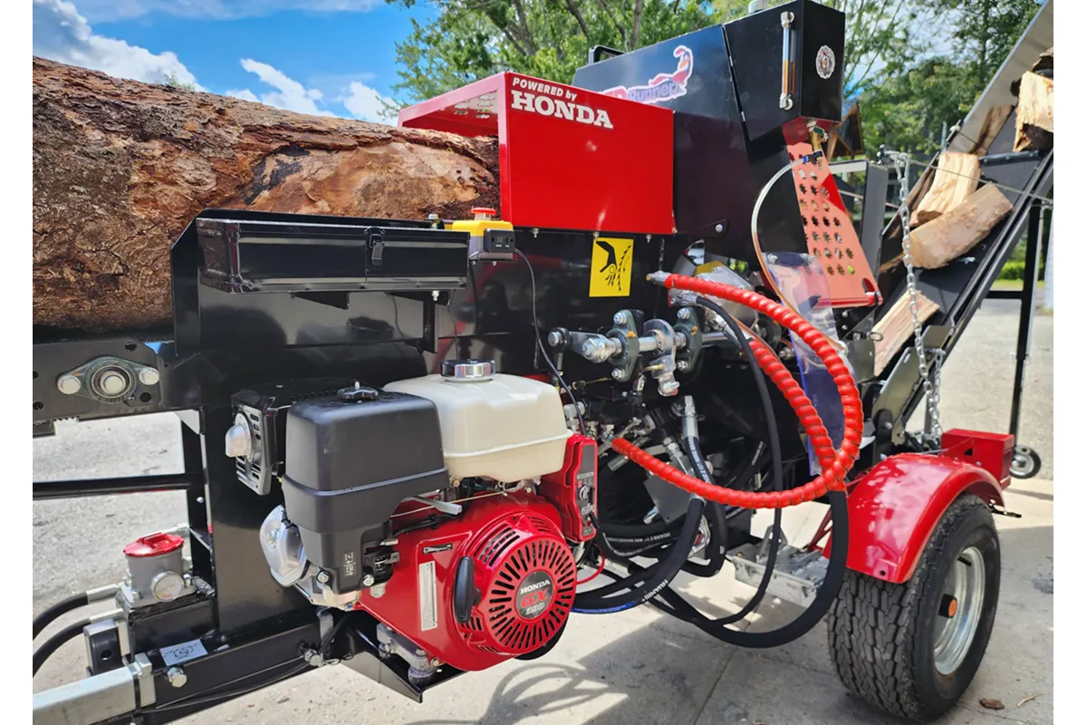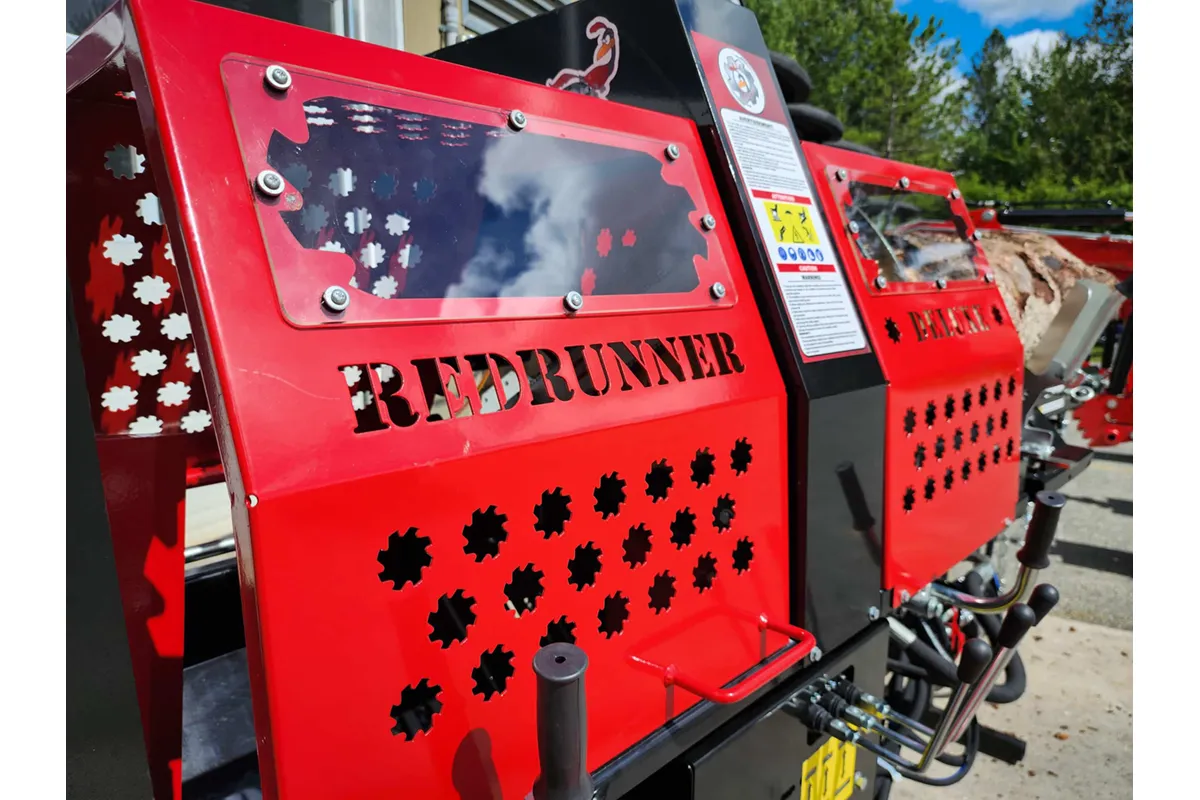 You like the idea behind the Red Runner Standard, but want a more premium option? The Red Runner Deluxe firewood processor comes equipped with a high-quality 13HP Honda GX390 engine, a 30 degree left to right swiveling outfeed conveyor, heavy-duty premium conveyor belts and a complete road package, including Torflex suspension, wheel fenders, LED brake lights and turn signals, illuminated license plate holder and high-speed wheels and tires.